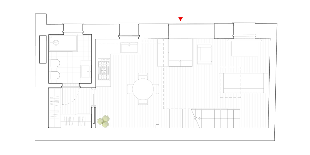 Il progetto si concentra esclusivamente sugli interni, mantenendo invariata l’immagine esterna dell’edificio. Il risultato è una trasformazione radicale ma rispettosa del contesto: da spazio di lavoro a nuova dimensione domestica, capace di coniugare memoria e contemporaneità.